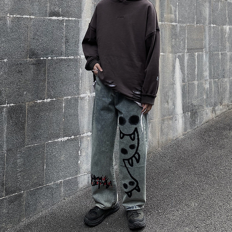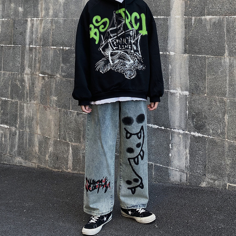 Elevate your street style with these trendy loose drape mopping straight casual denim trousers, designed for both men and women. Crafted from high-quality cotton, these trousers combine comfort and style effortlessly, making them the perfect addition to your wardrobe.